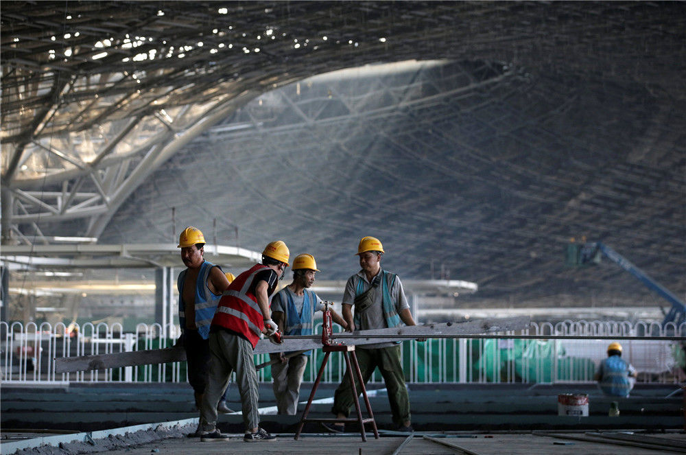 2018年10月27日,北京,大興新機場的建設(shè)者。周錦/視覺中國