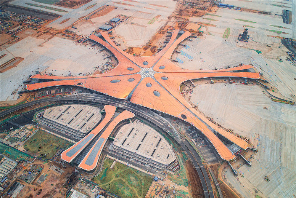 2019年5月24日,北京,新機場建設(shè)距離竣工時間還有37天,工程進入倒計時。機場開建至今不到5年時間,機場施工工程將于6月底竣工,將于9月底投入運營,該機場有望成為世界上規(guī)模最大的機場之一。任振朝/千龍圖像/視覺中國