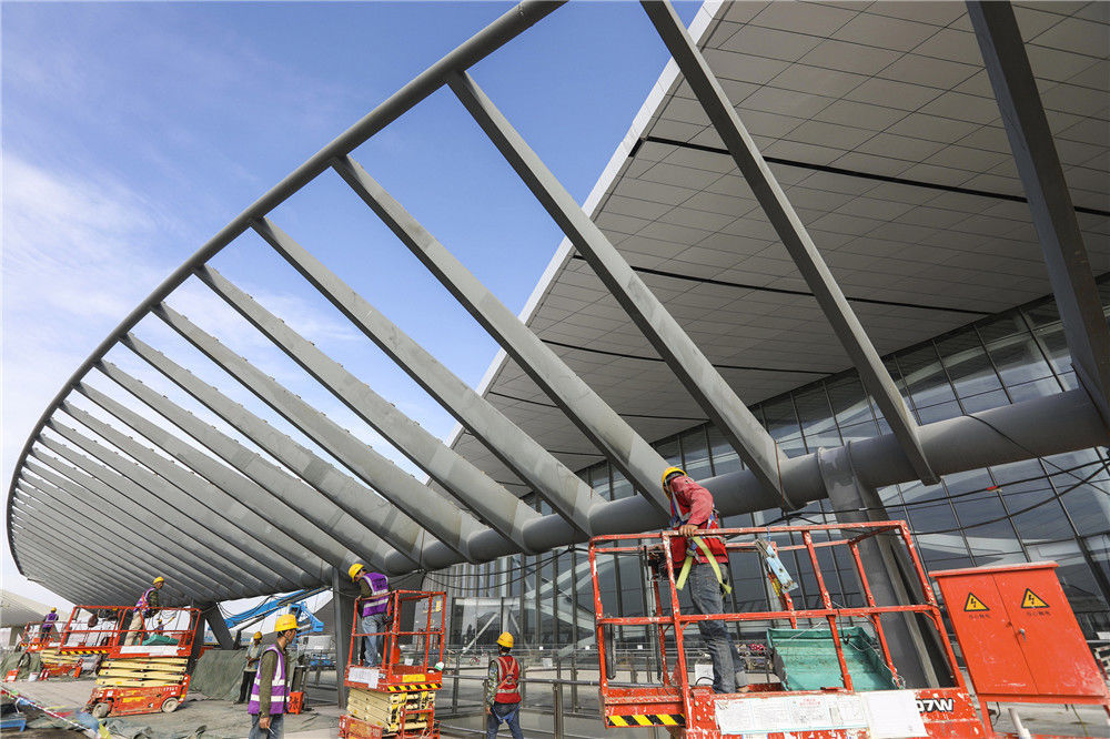 2019年5月24日,北京,新機(jī)場(chǎng)建設(shè)距離竣工時(shí)間還有37天,工程進(jìn)入倒計(jì)時(shí)。機(jī)場(chǎng)開建至今不到5年時(shí)間,機(jī)場(chǎng)施工工程將于6月底竣工,將于9月底投入運(yùn)營(yíng),該機(jī)場(chǎng)有望成為世界上規(guī)模最大的機(jī)場(chǎng)之一。任振朝/千龍圖像/視覺中國(guó)