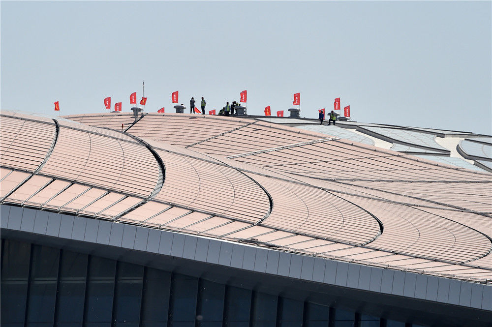 2019年5月13日,北京大興國際機場進行真機試飛。工人正在工作。可為/視覺中國