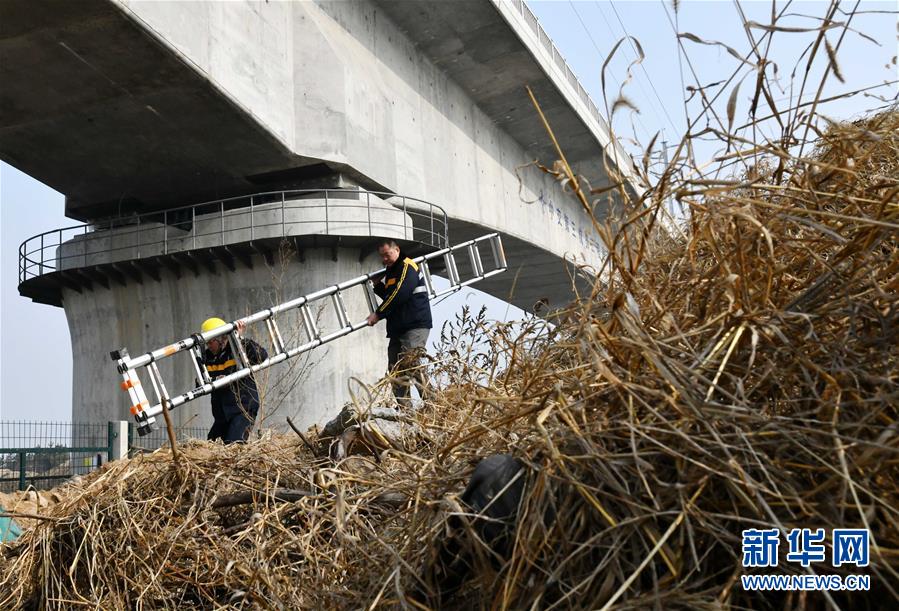 1月3日,中國鐵路濟(jì)南局臨沂工務(wù)段工程技術(shù)員在沂河特大橋橋下搬運(yùn)工具。新華社記者 朱崢攝