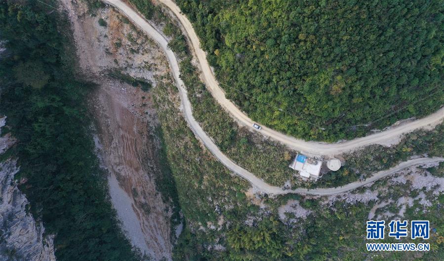 八好村駐村第一書記韋德王駕車前往群眾家中,公路的另一側(cè)是兩百多米深的懸崖(2019年12月16日攝)。新華社記者黃孝邦攝