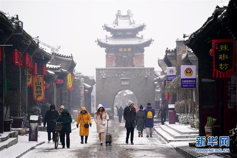 當(dāng)日,山西省平遙縣迎來(lái)降雪,雪中的平遙古城銀裝素裹,美景如畫(huà)。平遙古城是目前中國(guó)保存最完整的古代縣級(jí)城池之一,1997年被列入世界文化遺產(chǎn)名錄。