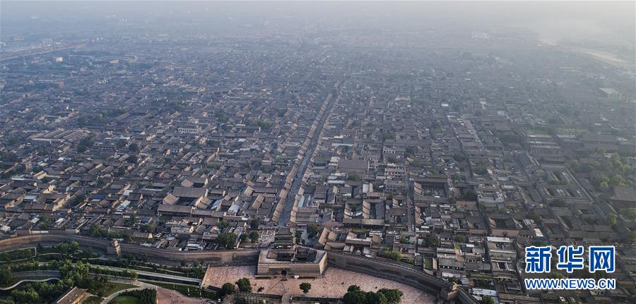 這是7月20日無(wú)人機(jī)拍攝的平遙古城北門(mén)。