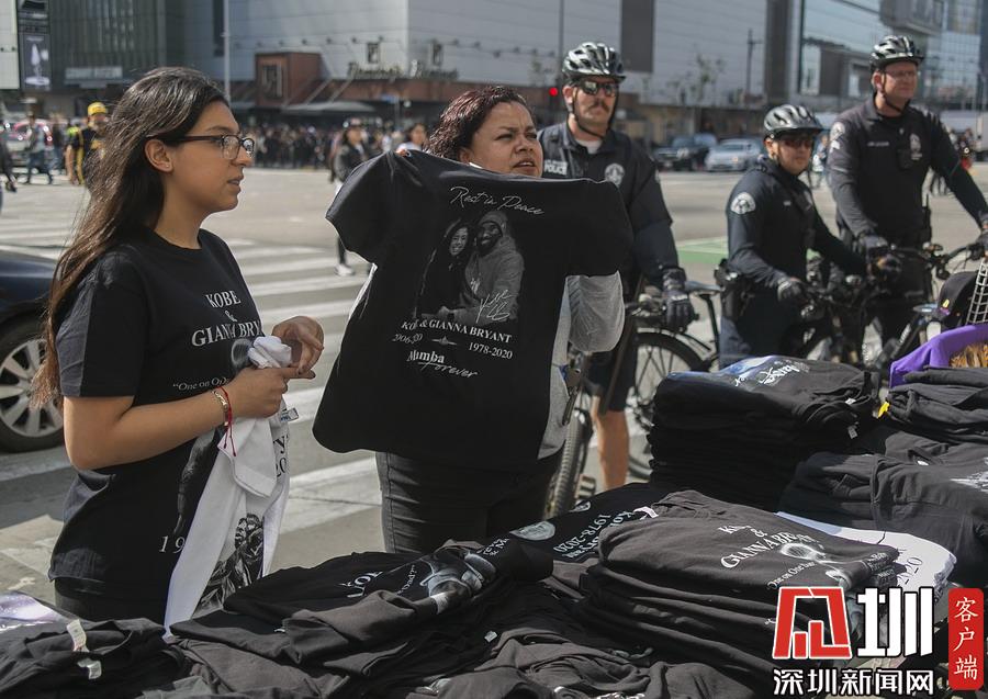 美國洛杉磯,NBA巨星科比-布萊恩特與女兒吉安娜追思會于洛杉磯湖人主場斯臺普斯中心舉行。