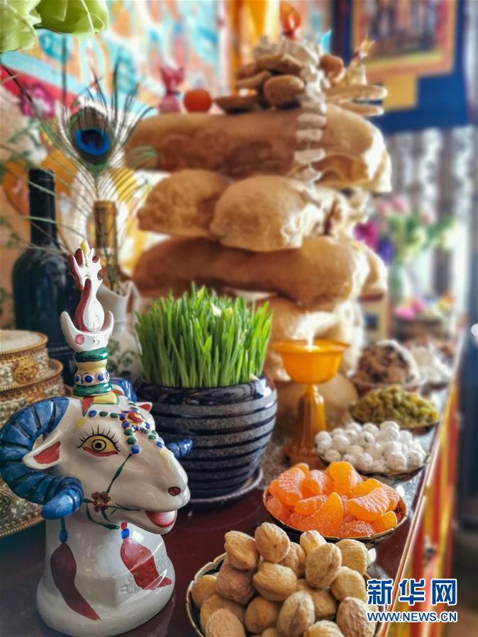 擺放在西藏群眾家中的新年供品(2月24日攝)。新華社記者普布扎西攝