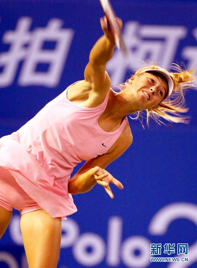 圖為2003年9月17日,莎拉波娃在上海女子網(wǎng)球公開(kāi)賽單打比賽中戰(zhàn)勝法國(guó)選手埃米麗·勞埃特,晉級(jí)下一輪。 新華社記者凡軍攝