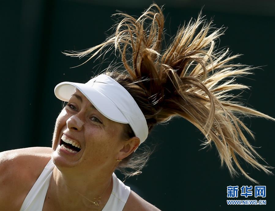 圖為2019年7月2日,莎拉波娃在溫布爾登網(wǎng)球公開賽女單第一輪比賽中對陣法國選手帕爾芒捷。比賽進行至第三盤時,莎拉波娃退賽,止步首輪。 新華社記者韓巖攝