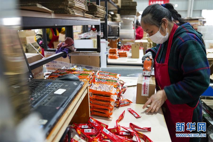 2月27日,在秀山(武陵)現(xiàn)代物流園區(qū)的電商云倉(cāng)內(nèi),工人在打包包裹。地處重慶市秀山縣的秀山(武陵)現(xiàn)代物流園區(qū),是渝湘黔三省市交界地區(qū)的區(qū)域性物流中心。重慶市秀山縣在做好新冠肺炎疫情防控工作前提下,當(dāng)?shù)卣e極幫助電商、物流企業(yè)解決招工、運(yùn)輸、銷(xiāo)售等方面的實(shí)際問(wèn)題,推動(dòng)秀山(武陵)現(xiàn)代物流園區(qū)快速進(jìn)入全面復(fù)工復(fù)產(chǎn)階段。據(jù)介紹,隨著物流園區(qū)的電商和物流企業(yè)全面復(fù)工復(fù)產(chǎn),既滿足當(dāng)?shù)厝罕姷奈镔Y供應(yīng),又幫助當(dāng)?shù)剞r(nóng)產(chǎn)品通過(guò)電商平臺(tái)實(shí)現(xiàn)快速銷(xiāo)售。新華社記者劉潺攝