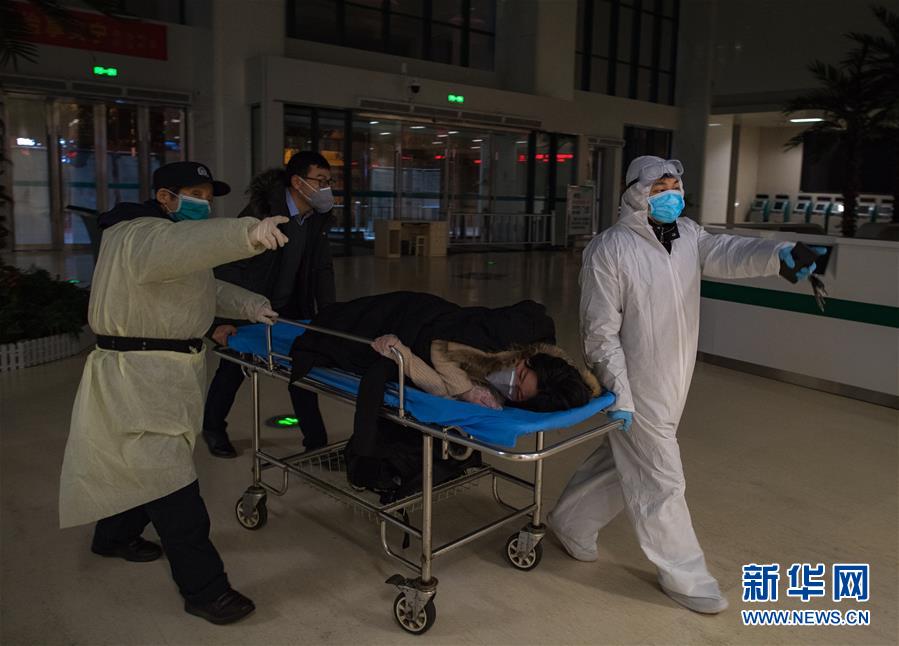 2月29日凌晨,王震(右一)協(xié)助將產(chǎn)婦劉婷送至CT室做產(chǎn)前檢查。新華社記者 肖藝九 攝