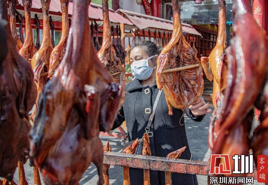 2020年2月28日,走進四川省成都市彭州市九尺鎮(zhèn),拍攝的傳統(tǒng)名吃—九尺板鴨圖片。早在明朝,九尺板鴨已頗有名氣,是當?shù)卮脱缳e的必備菜式。因其主產(chǎn)地在彭州市九尺鎮(zhèn)而得名。