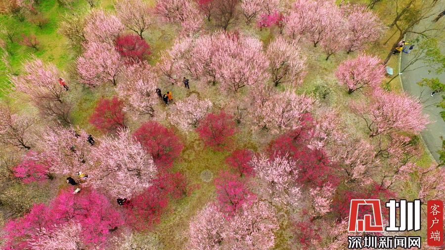 2020年2月26日,春暖花開,春意盎然,江蘇省揚州市蜀岡西峰生態(tài)公園內梅花競相綻放,五顏六色的梅花樹為古城大地披上七彩春裝,美不勝收,吸引了市民和游客前來踏春賞景。