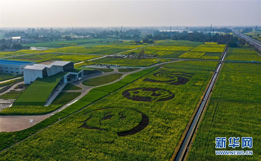 2月25日在四川省崇州市農業(yè)產業(yè)功能區(qū)拍攝的油菜花田(無人機照片)。新華社記者王曦攝