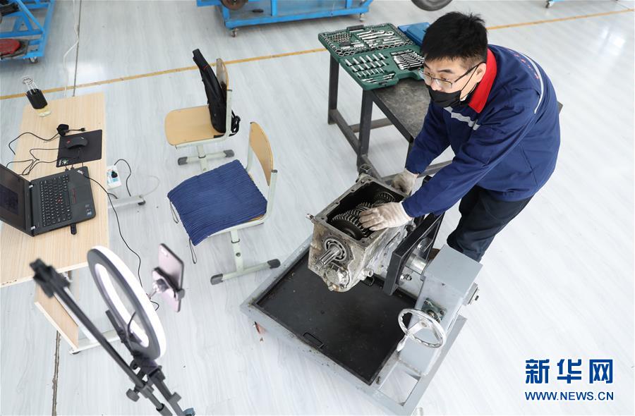 3月4日,職教城內(nèi)的鞍山市交通運(yùn)輸學(xué)校的高峰老師為學(xué)生進(jìn)行變速器檢修實(shí)訓(xùn)網(wǎng)絡(luò)授課。遼寧省鞍山市職教城內(nèi)的各類(lèi)職業(yè)教育學(xué)校從3月2日恢復(fù)網(wǎng)絡(luò)授課以來(lái),教師們?cè)O(shè)置了豐富多彩的課程,提高1萬(wàn)余名學(xué)生線(xiàn)上學(xué)習(xí)的積極性。新華社記者姚劍鋒 攝
