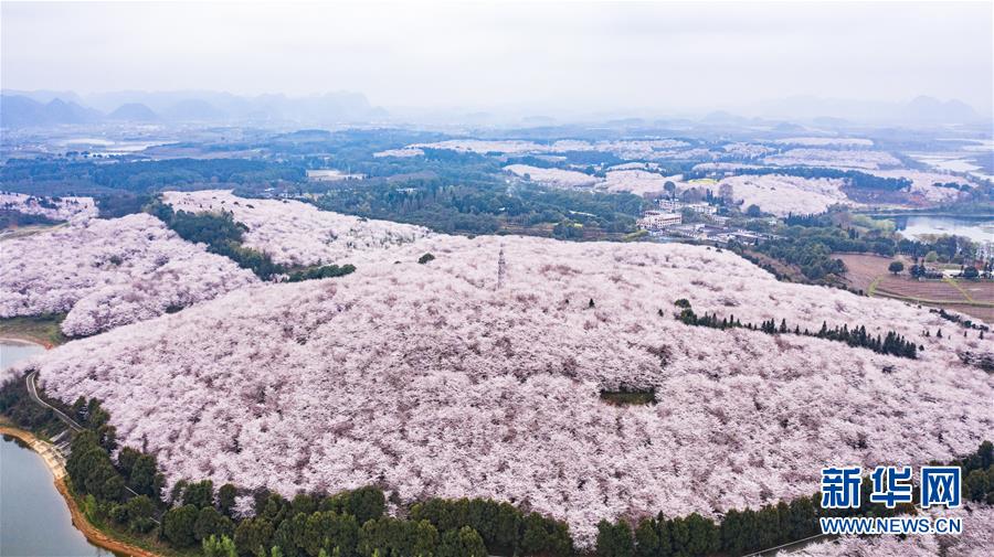 3月12日拍攝的貴安新區(qū)櫻花觀光園風(fēng)景(無(wú)人機(jī)照片)。 近日,貴州省貴安新區(qū)櫻花觀光園內(nèi)櫻花競(jìng)相盛開,花團(tuán)錦簇間春意盎然。據(jù)介紹,疫情防控期間,為避免人群聚集,櫻花園暫不接待游客。 新華社記者 陶亮 攝