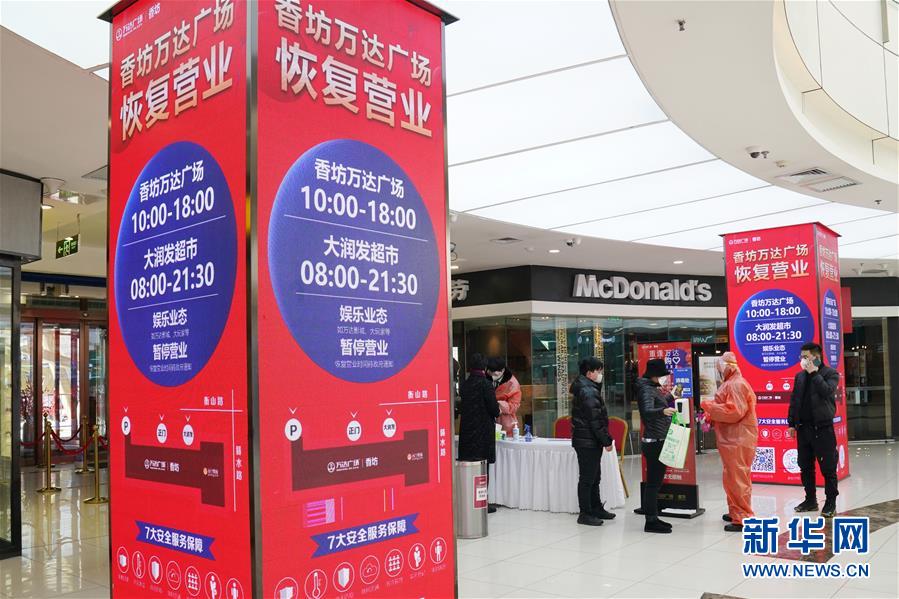 3月13日,在哈爾濱香坊萬達(dá)廣場內(nèi),工作人員在給進(jìn)店顧客測(cè)體溫、消毒。 近日,哈爾濱市多家大型商場陸續(xù)恢復(fù)營業(yè)。這些恢復(fù)營業(yè)的商場采取多種措施,從嚴(yán)細(xì)致做好疫情防控和安全風(fēng)險(xiǎn)防范工作,為廣大顧客提供安全放心的購物空間。 新華社記者 王建威 攝