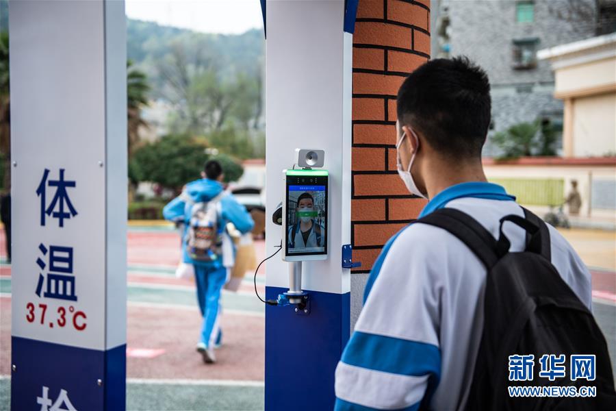 3月15日,烏當(dāng)中學(xué)高三學(xué)生在校門處測(cè)量體溫。 當(dāng)日,貴陽(yáng)市烏當(dāng)中學(xué)部分高三學(xué)生有序返校,準(zhǔn)備恢復(fù)上課。據(jù)悉,貴州省高三年級(jí)和初三年級(jí)學(xué)生將于3月16日正式開學(xué)。 新華社記者 陶亮 攝