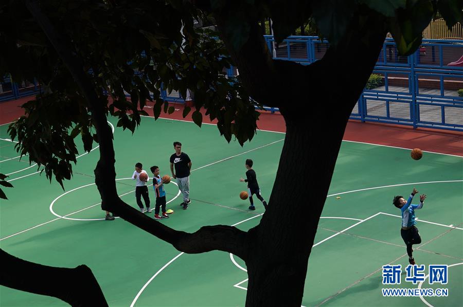 小朋友在籃球場鍛煉(2月23日攝)。新華社記者李鋼攝
