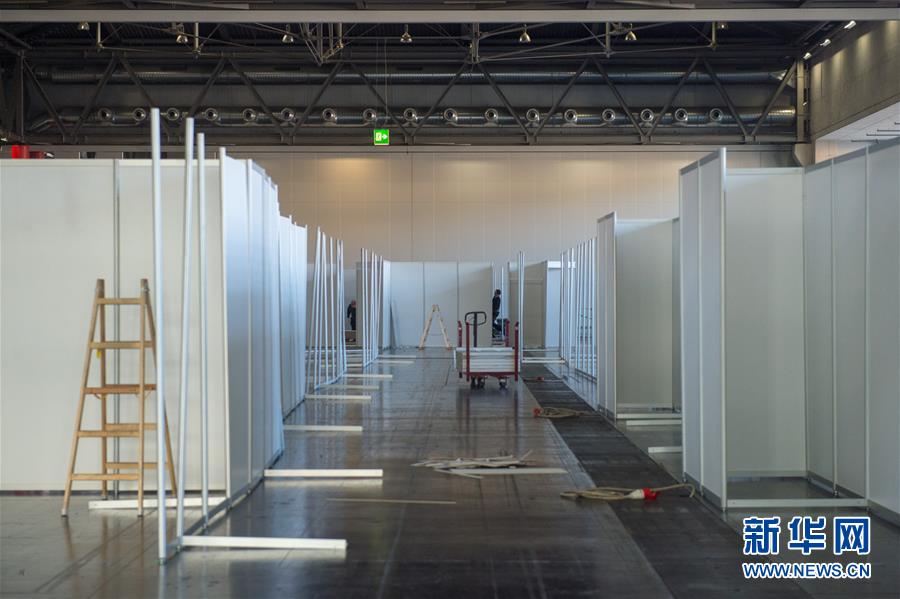 3月14日,在即將改造成為方艙醫(yī)院的維也納展覽館內,工作人員正在加緊施工。近日,由于奧地利新型冠狀病毒感染人數(shù)不斷增加,奧地利首都維也納正在將該市的一座大型展覽館——維也納展覽館改造成為一座臨時性的方艙醫(yī)院。據(jù)當?shù)孛襟w介紹,該方艙醫(yī)院將在下周提供880張床位,用于收治輕度病癥患者。新華社記者郭晨攝