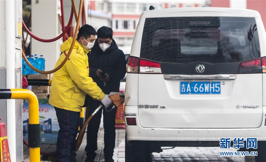 3月17日,吉林省長春市一處加油站工作人員為車輛加油。  國家發(fā)展改革委17日宣布,近日國際市場油價持續(xù)下跌,按照現(xiàn)行成品油價格形成機(jī)制,自2020年3月17日24時起,國內(nèi)汽油、柴油價格每噸分別降低1015元和975元。折合每升價格下調(diào)約8角。此次調(diào)價已至每桶40美元調(diào)控下限,即俗稱的“地板價”,低于40美元部分不再下調(diào)。新華社記者 許暢 攝