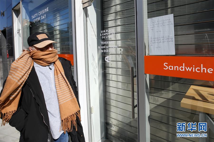 3月18日,在比利時(shí)布魯塞爾,一名男子查看快餐店張貼的關(guān)閉告示。 新華社記者 張鋮 攝