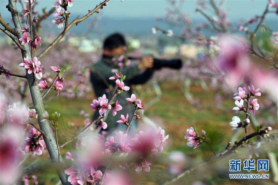 3月22日,游客在云南省曲靖市沾益區(qū)盤江鎮(zhèn)河西村的果園里拍攝桃花。春季里,云南省曲靖市沾益區(qū)鄉(xiāng)村果園里的桃花梨花競(jìng)相綻放,景色秀美,吸引游人前來觀光。新華社記者楊宗友攝