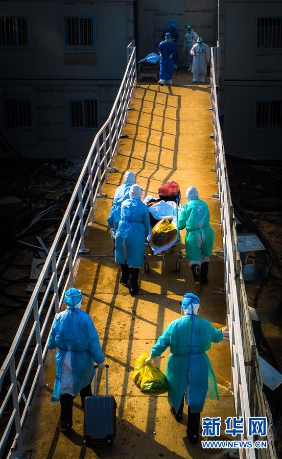 醫(yī)護人員將患者轉運至武漢火神山醫(yī)院病房(2月4日攝)。新華社記者肖藝九攝