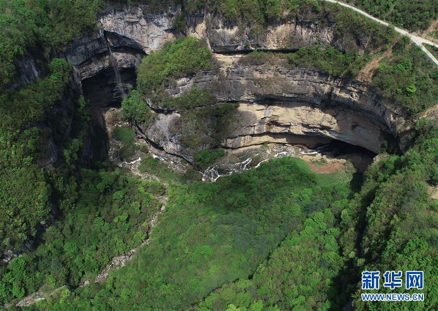 4月22日無人機拍攝的地洞河天坑。新華社記者張博文攝