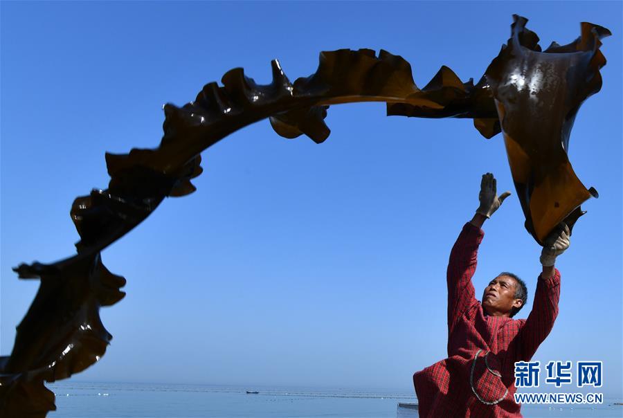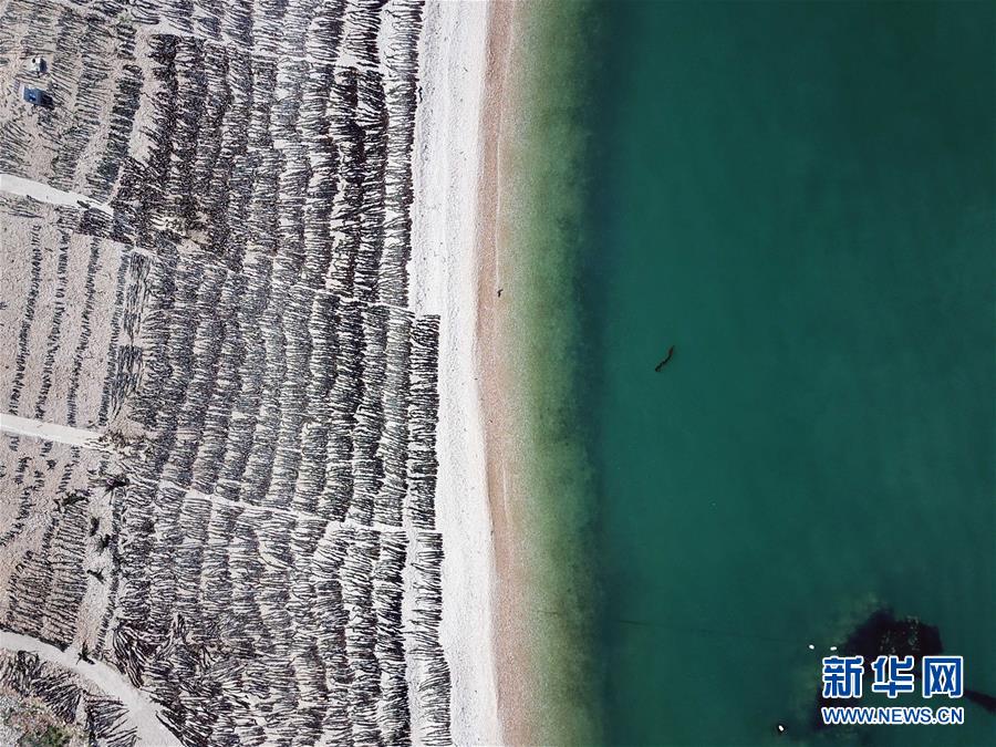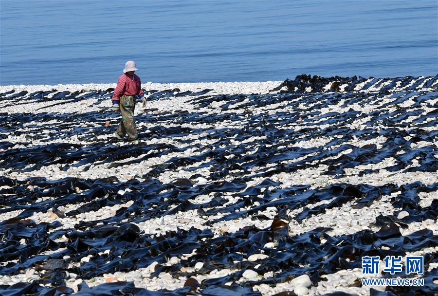 海島居民在晾曬海帶(5月23日攝)。新華社記者朱崢攝