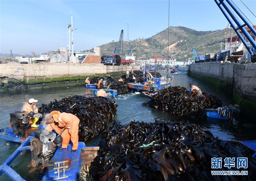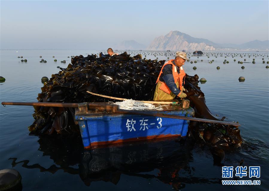 大欽島鄉(xiāng)位于山東省煙臺市長島縣北部。每年5月至8月,該島嶼附近的1.3萬畝海帶進入收獲期。海島居民們每天駕駛小船駛向養(yǎng)殖區(qū)收割海帶,諸多工序有條不紊,迎來忙碌的“夏收”季節(jié)。2018年,大欽島共收獲鮮海帶18.2萬噸,加工干海帶約1.8萬噸,產(chǎn)值1.5億元。