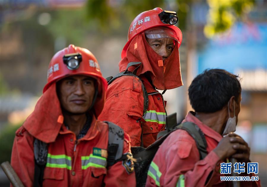 3月31日,幾名剛從火災(zāi)現(xiàn)場(chǎng)撤下來的撲火隊(duì)員在休整。新華社記者江宏景攝
