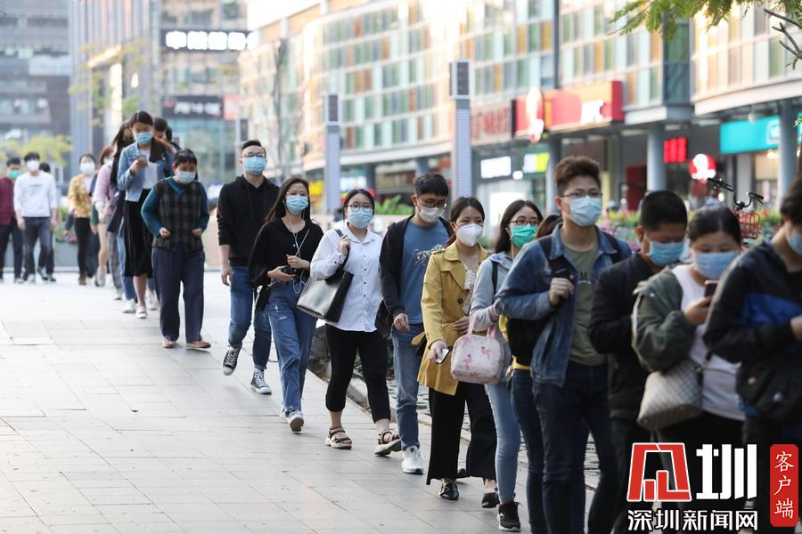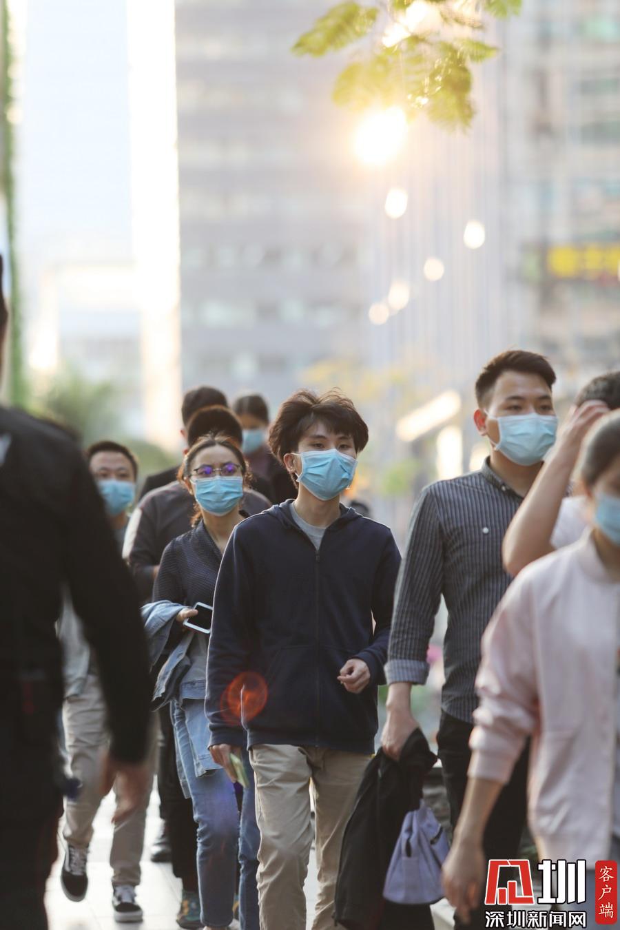 見圳客戶端·深圳新聞網(wǎng)2020年3月19日訊 下班時間,深圳地鐵一號線深大站A3出口外,下班后的市民在站外排大排長龍,依次有序進(jìn)入地鐵站乘坐列車回家。