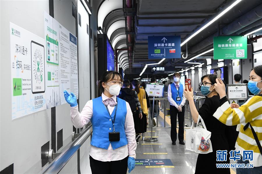 3月18日晚高峰時段,在深圳地鐵車公廟站,乘客掃描二維碼進(jìn)行實(shí)名登記。新華社記者梁旭攝