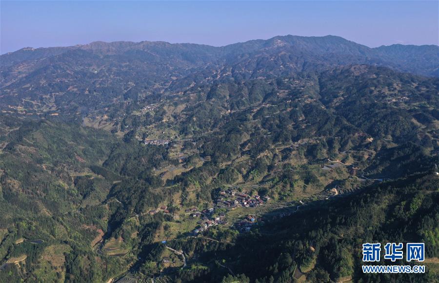 這是融水苗族自治縣桿洞鄉(xiāng)小河村高羽苗寨的木樓和梯田(3月31日攝,無人機(jī)照片)。新華社記者黃孝邦攝