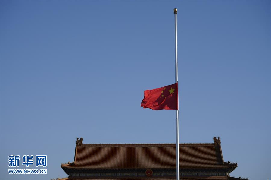 天安門(mén)廣場(chǎng)下半旗志哀