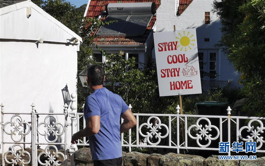 這是4月4日在澳大利亞悉尼費(fèi)爾萊特社區(qū)拍攝的鼓勵人們樂觀抗疫的標(biāo)語牌。新華社記者白雪飛攝