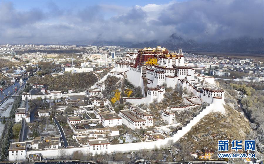 4月5日拍攝的布達(dá)拉宮雪景(無(wú)人機(jī)照片)。新華社記者普布扎西攝