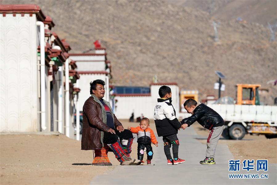 在拉薩市堆龍德慶區(qū)古榮鄉(xiāng)榮瑪高海拔生態(tài)搬遷點(diǎn),美瓊(左一)和孩子們在家門口玩耍(4月1日攝)。美瓊一家在搬遷點(diǎn)分到一套120平米的房子。美瓊還和朋友合伙在搬遷點(diǎn)的扶貧綜合門面房租了一間店面,開了一家銷售日用品的小商店。新華社記者 詹彥 攝