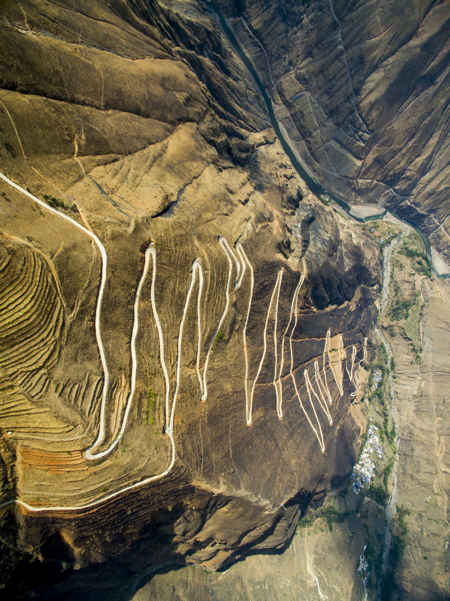 2020年4月5日,云南,昆明市祿勸縣雪山鄉(xiāng)基多村委會到基多村民小組的公。公路在原地盤旋海拔下降1200米。