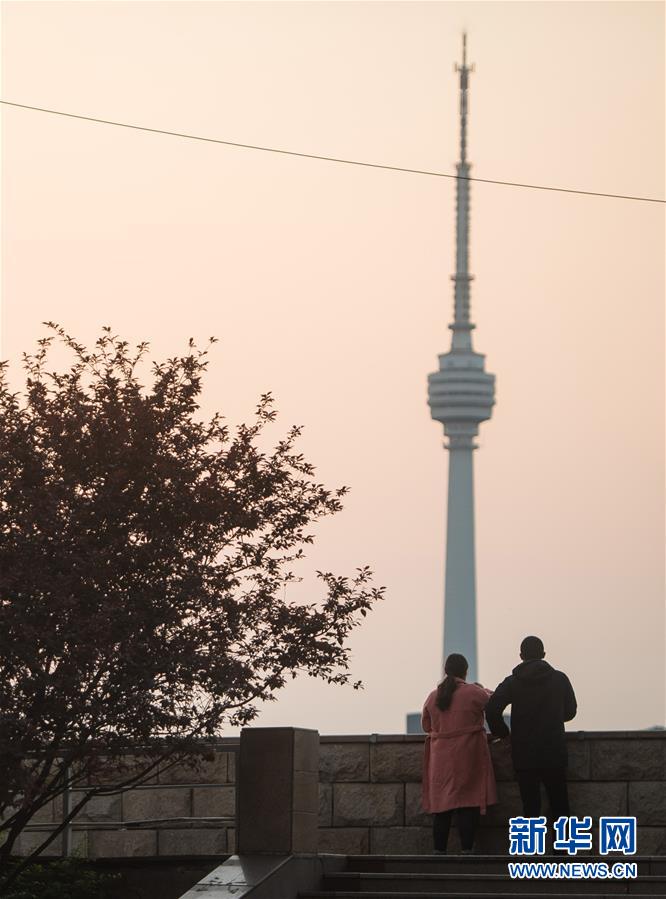 4月8日,市民在武漢中華路碼頭欣賞風景。新華社記者肖藝九攝