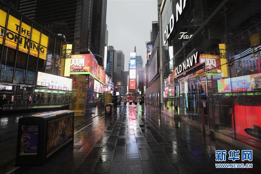 這是3月23日下午拍攝的空蕩蕩的紐約時報廣場。新華社記者王迎攝