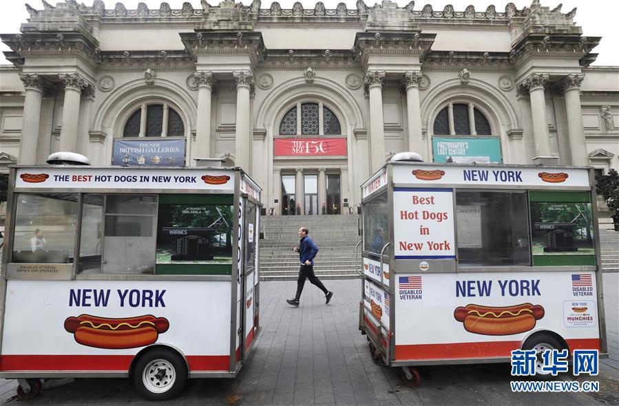 3月19日,在美國紐約曼哈頓,一名男子跑步經過因新冠疫情而暫時閉館的大都會博物館。新華社記者王迎攝