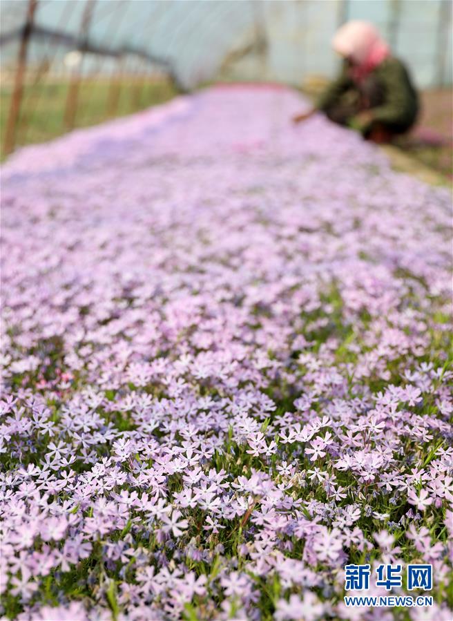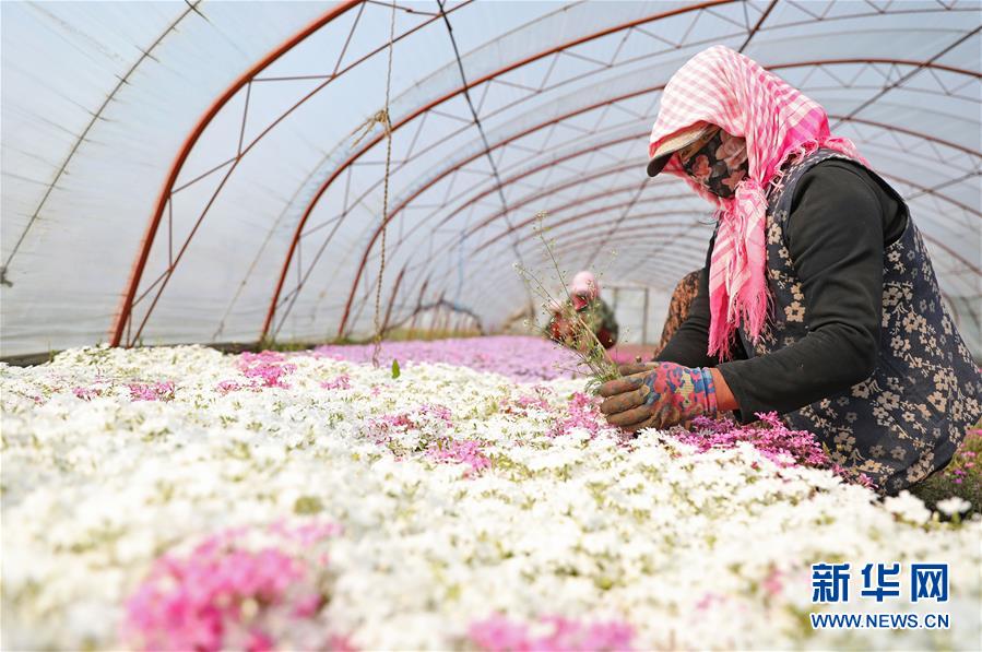 4月13日,花農(nóng)在八角臺(tái)街道雅化村一塊花圃內(nèi)分揀培育好的花苗。新華社記者姚劍鋒攝