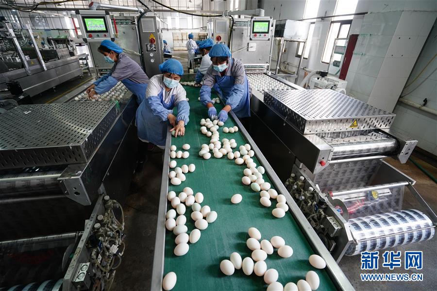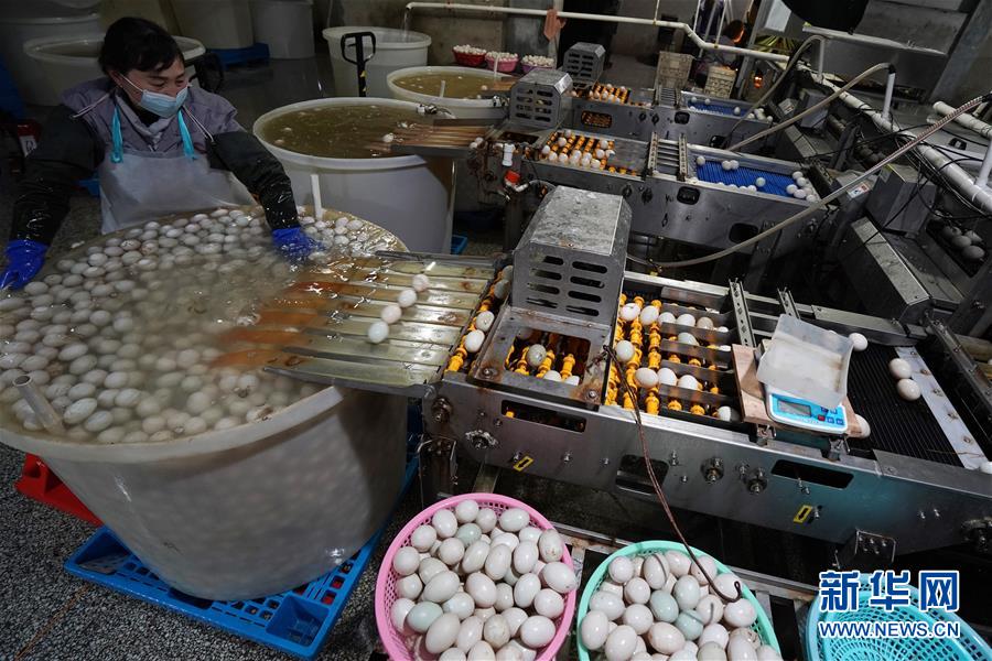 4月15日,在江蘇高郵鴨集團(tuán),工人在生產(chǎn)線上忙碌。“高郵鴨蛋”是江蘇高郵的特色農(nóng)業(yè)名片。近年來(lái),當(dāng)?shù)卦诹挤N繁育、生態(tài)養(yǎng)殖、產(chǎn)品加工等方面加大力度,推動(dòng)高郵鴨蛋品牌化建設(shè),讓小鴨蛋成為帶動(dòng)農(nóng)戶致富的大產(chǎn)業(yè)。2019年,高郵市共計(jì)生產(chǎn)熟制鴨蛋產(chǎn)品近11.2億枚,年產(chǎn)值近17.68億元。新華社記者季春鵬攝