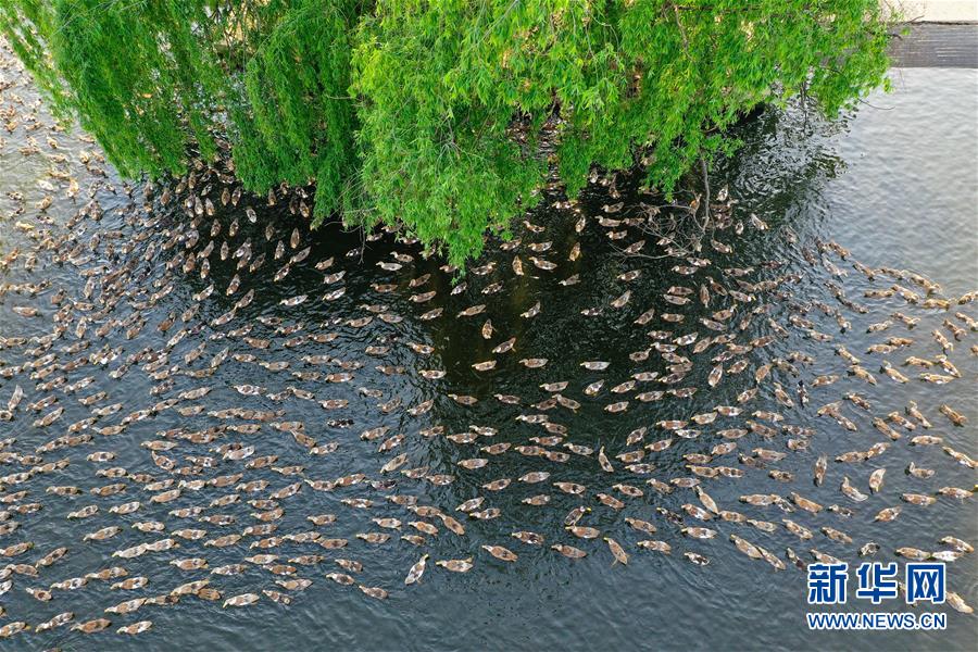 這是4月15日在高郵鴨良種繁育中心拍攝的鴨群(無(wú)人機(jī)照片)?!案哙]鴨蛋”是江蘇高郵的特色農(nóng)業(yè)名片。近年來(lái),當(dāng)?shù)卦诹挤N繁育、生態(tài)養(yǎng)殖、產(chǎn)品加工等方面加大力度,推動(dòng)高郵鴨蛋品牌化建設(shè),讓小鴨蛋成為帶動(dòng)農(nóng)戶致富的大產(chǎn)業(yè)。2019年,高郵市共計(jì)生產(chǎn)熟制鴨蛋產(chǎn)品近11.2億枚,年產(chǎn)值近17.68億元。新華社記者季春鵬攝