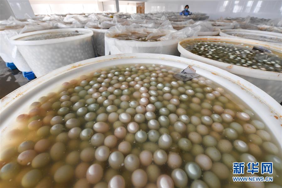 在江蘇高郵鴨集團(tuán)生產(chǎn)車(chē)間,腌制好的鴨蛋準(zhǔn)備進(jìn)行清洗包裝作業(yè)(4月15日攝)?!案哙]鴨蛋”是江蘇高郵的特色農(nóng)業(yè)名片。近年來(lái),當(dāng)?shù)卦诹挤N繁育、生態(tài)養(yǎng)殖、產(chǎn)品加工等方面加大力度,推動(dòng)高郵鴨蛋品牌化建設(shè),讓小鴨蛋成為帶動(dòng)農(nóng)戶致富的大產(chǎn)業(yè)。2019年,高郵市共計(jì)生產(chǎn)熟制鴨蛋產(chǎn)品近11.2億枚,年產(chǎn)值近17.68億元。新華社記者李博攝