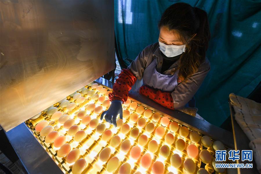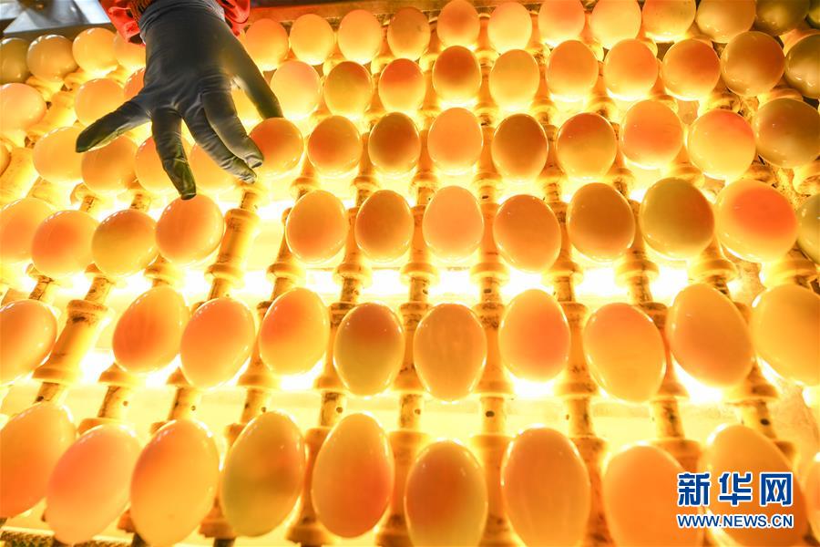 江蘇高郵鴨集團(tuán)的工作人員在生產(chǎn)線上對(duì)鴨蛋進(jìn)行光檢作業(yè)(4月15日攝)。“高郵鴨蛋”是江蘇高郵的特色農(nóng)業(yè)名片。近年來(lái),當(dāng)?shù)卦诹挤N繁育、生態(tài)養(yǎng)殖、產(chǎn)品加工等方面加大力度,推動(dòng)高郵鴨蛋品牌化建設(shè),讓小鴨蛋成為帶動(dòng)農(nóng)戶致富的大產(chǎn)業(yè)。2019年,高郵市共計(jì)生產(chǎn)熟制鴨蛋產(chǎn)品近11.2億枚,年產(chǎn)值近17.68億元。新華社記者李博攝