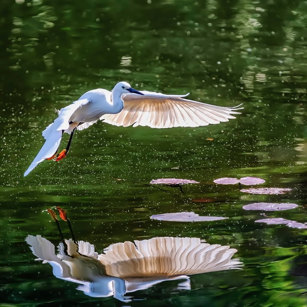 4月15日,攝于南山區(qū)華僑城天鵝堡附近。這是深圳拍鷺鳥的其中一個好去處。白鷺飛行時頭往回縮至肩背處,頸向下曲成袋狀,兩腳向后伸直,遠遠突出于尾后,兩翅緩慢地鼓動飛翔。徐捷