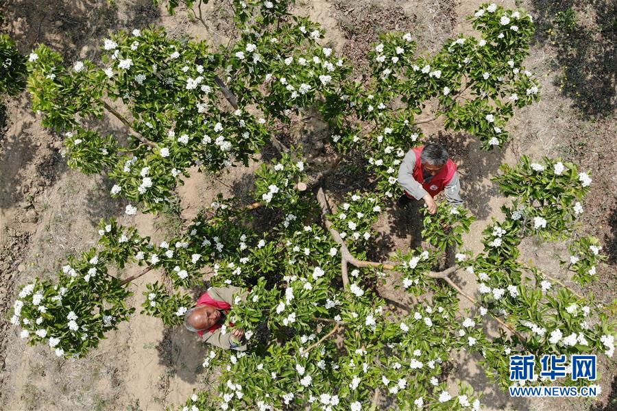 4月26日,農(nóng)民在河北省清河縣馬屯紅果種植專業(yè)合作社的山楂種植區(qū)內(nèi)為果樹疏花(無人機(jī)照片)。4月下旬以來,河北省清河縣2萬余畝山楂樹競(jìng)相開花,成為一道亮麗的風(fēng)景線。清河縣年產(chǎn)山楂7.5萬余噸,山楂種植已成為當(dāng)?shù)剞r(nóng)民的重要增收途徑。新華社記者牟宇攝
