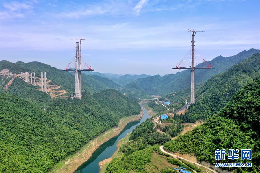 這是建設(shè)中的遵余高速湘江大橋(4月26日攝,無人機(jī)照片)。近日,由中鐵廣州局承建的貴州遵余高速湘江大橋工程在做好疫情防控的同時,全力恢復(fù)生產(chǎn)建設(shè)。目前工程進(jìn)展順利,正在進(jìn)行主橋鋼梁架設(shè),預(yù)計將于8月底合龍。據(jù)了解,遵余高速湘江大橋橋梁全長1700余米,主跨560米。新華社記者劉續(xù)攝
